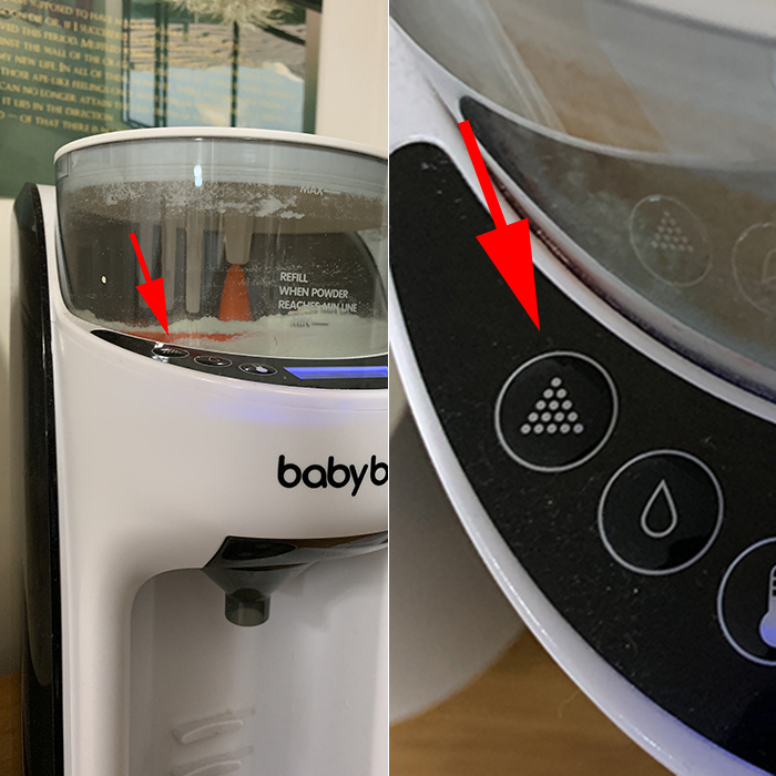 이번에는 분유 브랜드별 세팅 번호에 대해서 알아보려고 하는데요. 위에 링크 걸어 드린 포스팅에도 적어 놓았지만, 세팅 방법은 아주 간단해요. 아래 사진에서 가장 왼쪽 버튼, 점으로 삼각형을 그려놓은 버튼을 반복해서 누르면 숫자가 바뀌는데, 아래에서 분유별 세팅 번호를 확인하시고 우리 아가가 먹는 제품에 해당되는 번호에 세팅해 놓으면 끝이에요. 한 가지 주의하실 점은 같은 브랜드의 같은 모델이라 하더라도 단계에 따라 세팅 번호가 달라지니까 분유 바꿀 때마다 꼭 번호를 확인해서 세팅 해줘야 한다는 점이에요. (원하는 브랜드, 모델명을 한 번에 찾으시려면 Ctrl+F를 누른 뒤에 검색하시면 됩니다.)