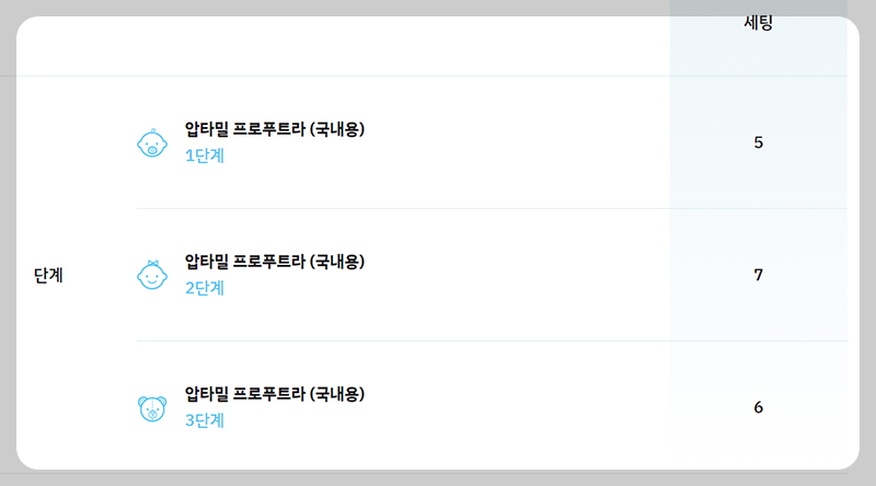 그럼 먼저 아기가 먹는 분유의 제조사를 선택하시고요. 저희 아기는 압타밀을 잘 먹어서 초반 며칠을 제외하고는 분유 끊을 때까지 압타밀만 먹었어요. 압타밀을 클릭하면 세분화된 모델명이 나와요. 그 중에서 아기가 먹는 모델을 클릭하면 돼요.